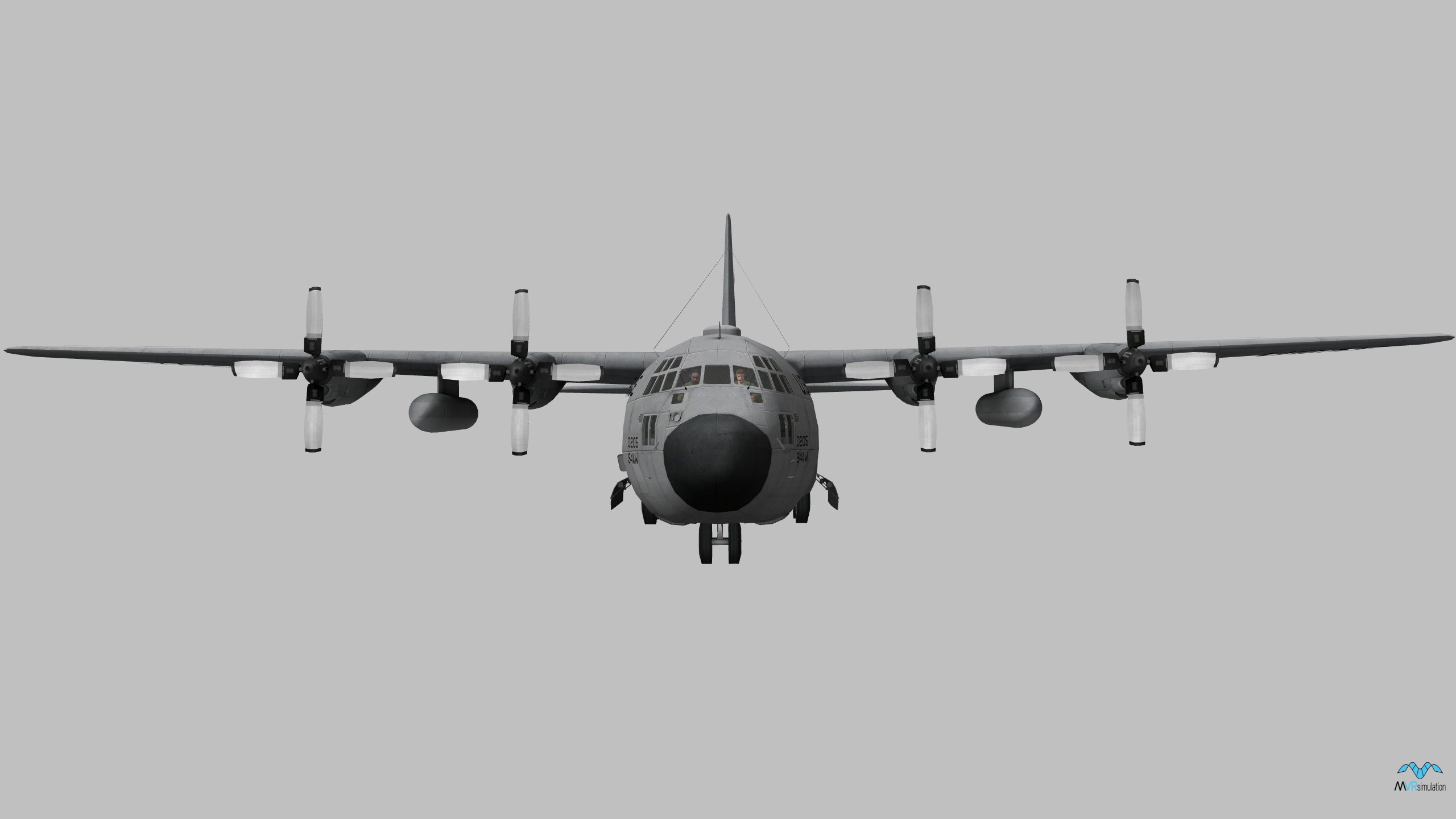 Front view of MVRsimulation's C-130H2 3D Model with gear down and engines off