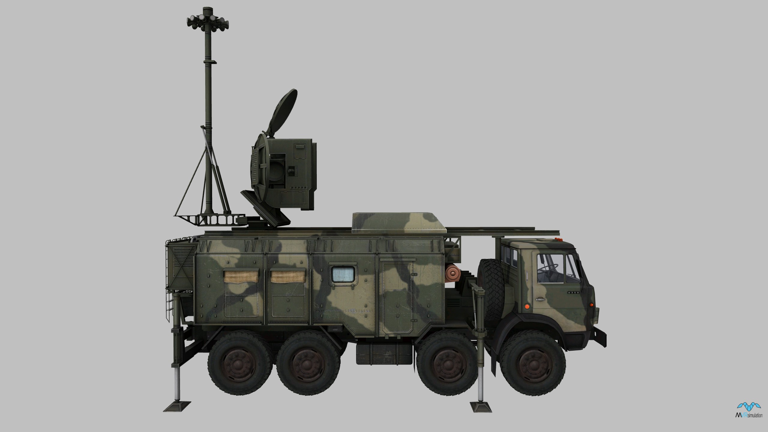 MVRsimulation's Krasukha-4 model is comprised of 60,969 polygons and 75.5 MB of textures (per paint scheme). The model has an articulated anti-radar system turret. The anti-radar system, headlights, taillights, and brake lights are controlled on appearance switch states.