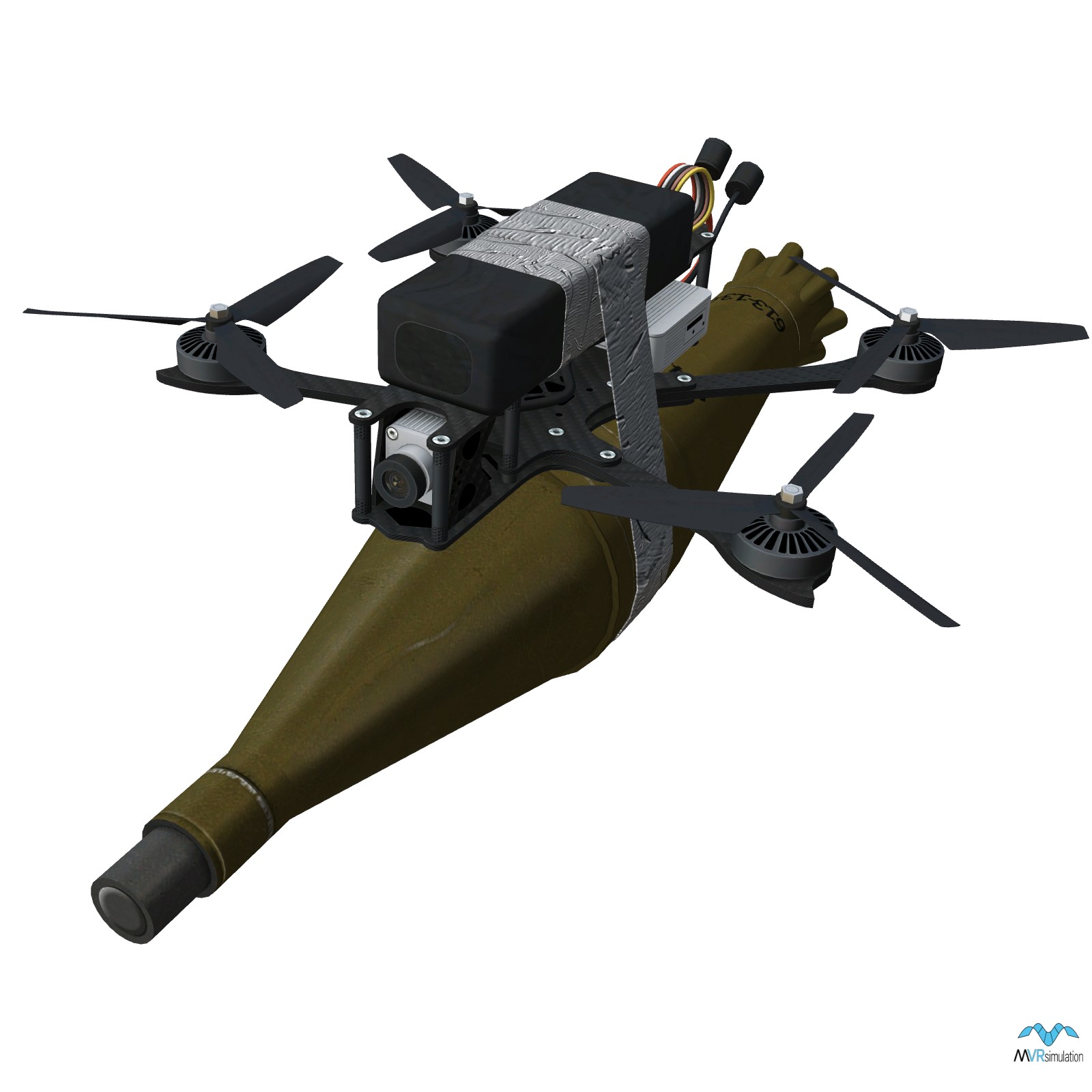 - Appear to networked simulators as a real-time 3D model representative of a quadcopter UAV equipped with an RPG7 munition.