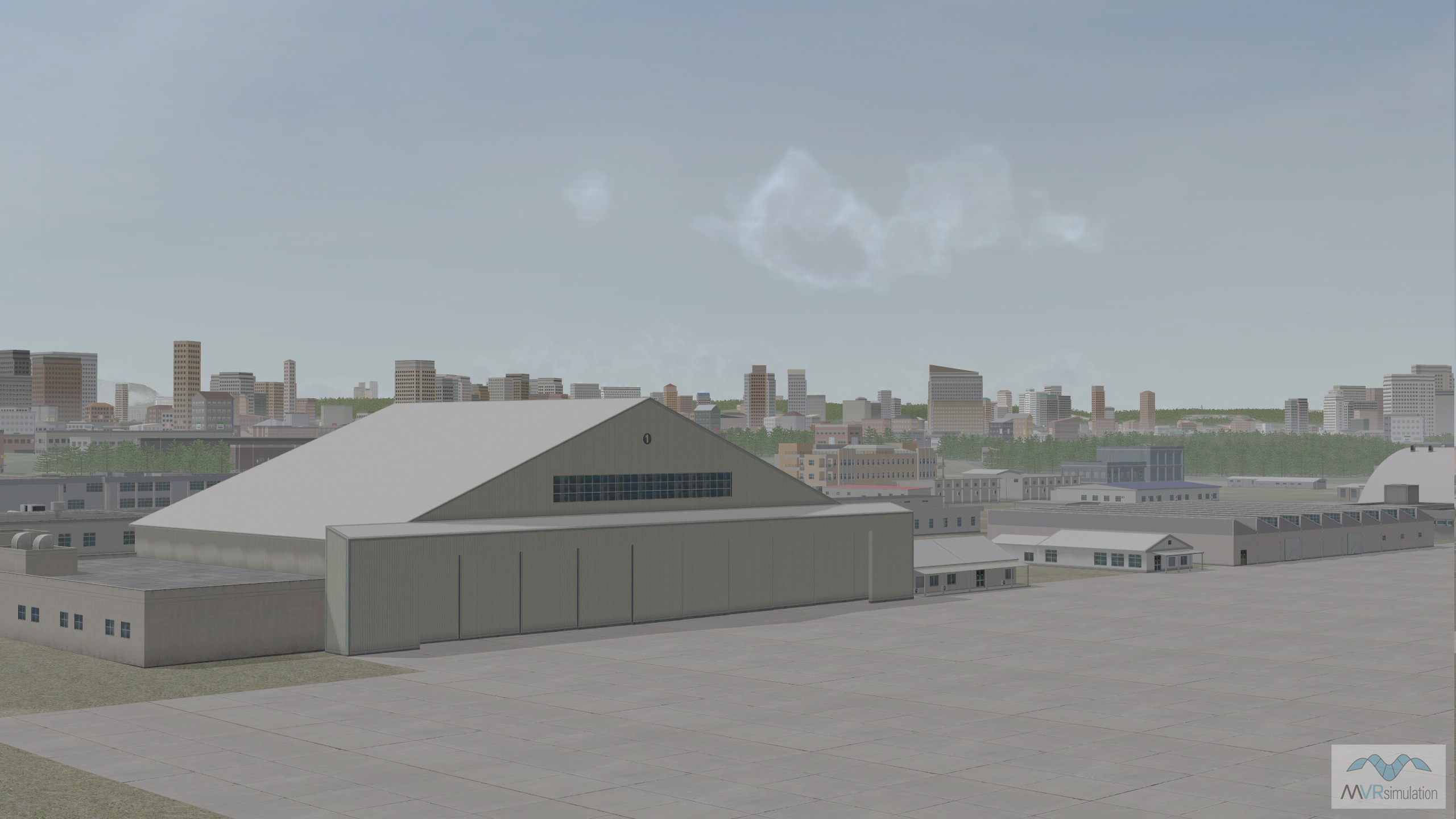 The MVRsimulation Hsinchu, Taiwan terrain database includes geospecific hangars and military specific elements.