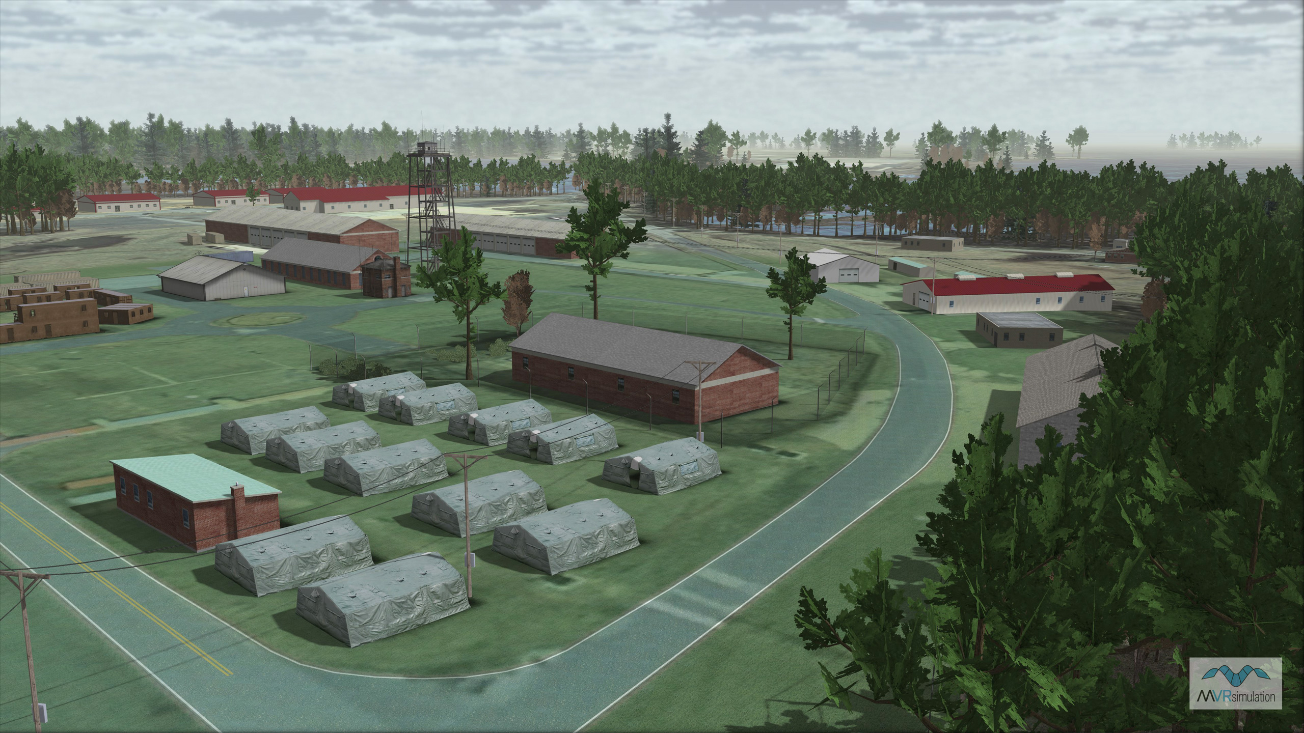 The environment is densely populated with trees, power lines, fences, and other cultural details that match the real-world site. The terrain’s high-resolution coastline on the Chesapeake Bay transitions seamlessly to VRSG’s animated, multi-textured water for comprehensive land and littoral operations. All custom 3D models used in this database were placed with Scenario Editor and are available in MVRsimulation's 3D model libraries.